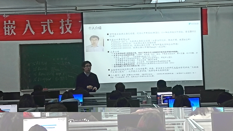 下午,程总为软件技术、计算机网络专业的师生作了两场学术报告,报告题目为:互联网+大数据/人工智能创新。学术报告内容包括:全球大数据和AI人才现状、云和大数据驱动AI的发展、我国高校大数据和AI现状、阿里云大数据介绍主阿里云大数据工程师成长路线图等。程总同时也分享自身及团队的成长经历,整个报告内容翔实,高屋建瓴,对于有志于大数据行业的师生触动很大。