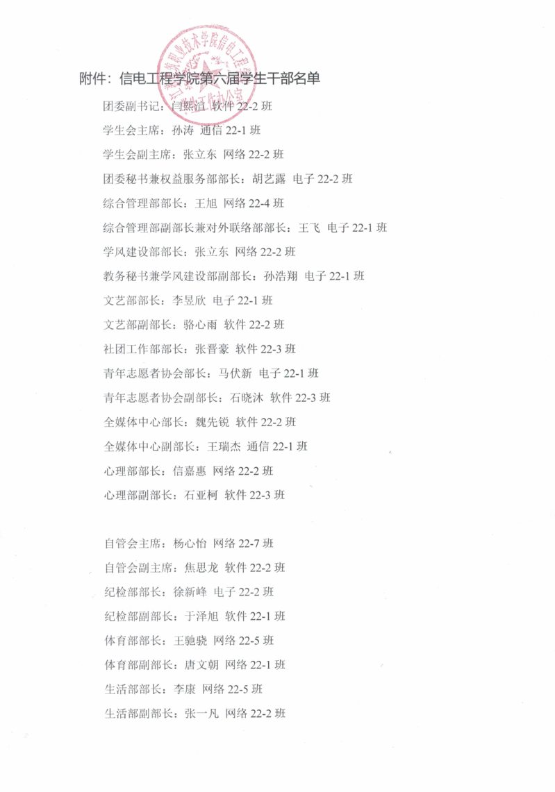 关于聘任信电工程学院第六届学生干部的通知