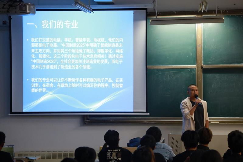 2024年9月2319点,信电工程学院2024级新生专业介绍会在晚自习教室顺利召开。各专业主任走进教室,与新生亲切见面,并向同学们进行专业介绍。
